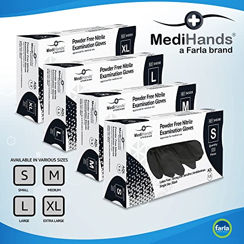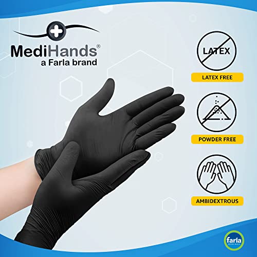Farla Medical MediHands Nitrile Gloves Disposable Black Gloves – Powder Free & Latex Free Nitrile Gloves – Multi-Purpose