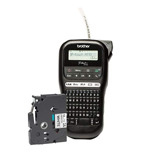 Brother PT-H110 Label Maker, P-Touch Label Printer, Handheld, QWERTY Keyboard, Up to 12mm Labels, Includes 12mm Black on…