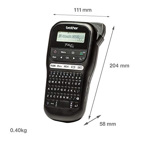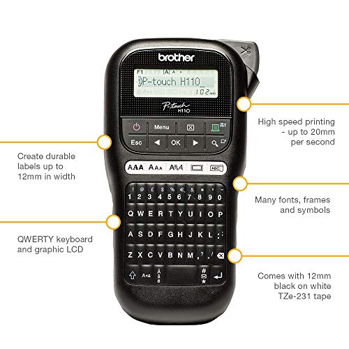 Specification: Brother PT-H110 Label Maker, P-Touch Label Printer, Handheld, QWERTY Keyboard, Up to 12mm Labels, Includes 12mm Black on…