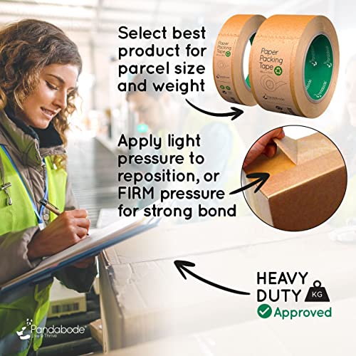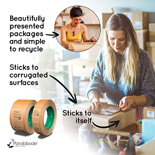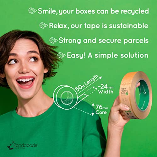Pandabode Paper Packing Tape | 24mm x 50m Strong, Recyclable Brown Kraft Paper| 1/2/3/6/12 Pack | for Eco Friendly…