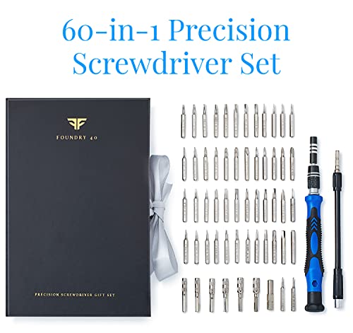Multi-function – 60 in 1 Precision small screwdriver bit set includes 60 screwdriver bits. Give a loved grandad or step dad as birthday gift, (Phillips, Star, Flathead, Torx, Torx Security, Pentalobe screwdriver and more), Screwdriver Handle, Flexible Shaft Extension Rod, Solid Shaft Extension Rod, 1/4-4mm Driver Adapter.