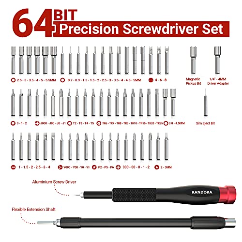 Randora 64 in 1 Precision Screwdriver Set Mini Magnetic Torx Screw Driver Bit DIY Electronics Repair Tools Kit for…