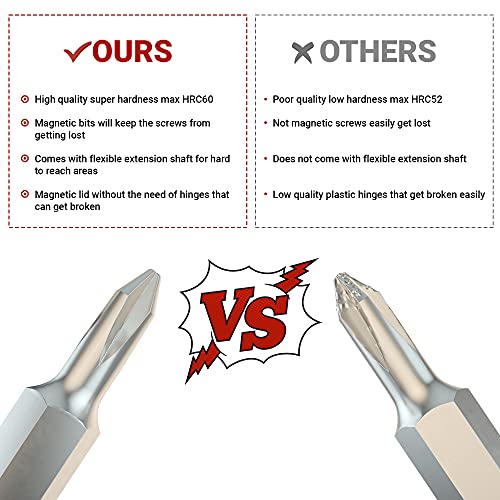 ✅Premier quality – Randora’s Precision screwdriver is made to last. We only use the most premium material,The bits are made of S2 steel tool material with 60 HRC Hardness to ensure a long lifetime, and the screwdriver is made from premium lightweight aluminum. In addition the tool set box is made from super strong ABS Plastic and the lids close via magnets to prevent broken hinges and extend product life time.