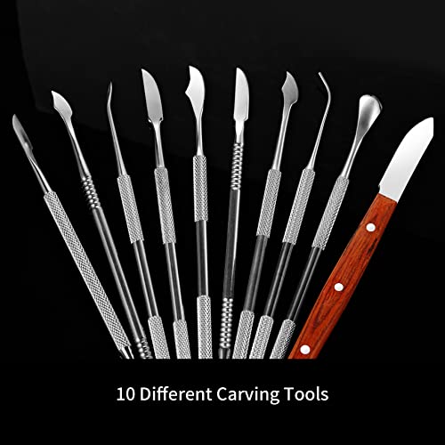 【Dual-end Shape Design】:10 in one carving tools include knife, scaler, probe, toothpick, tartar, plaque scraper, etc, dual head design for a variety of shapes & uses, meet your different work needs, make your work smoother and more flexible.
