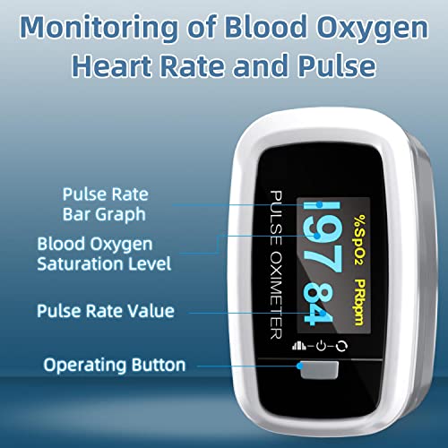 Pulse Oximeter Fingertip, Blood Oxygen Saturation Monitor, Heart Rate Monitor and SpO2 Levels, Portable Pulse Oximeter…