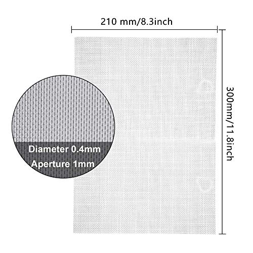 Size: Pest control mesh sheet size 300*210 mm/11.8*8.3 inches, hole diameter 1 mm, wire diameter 0.4 mm, 52% open area, silvery medium mesh, insect mesh can cut into different shape and size