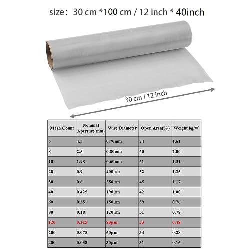 Specification: EMAGEREN 304 Stainless Steel Woven Wire 120 Mesh Metal Mesh Screen 30 X100CM Filter Screen Sheet Filtration Cloth Fine…