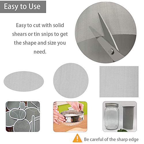 ☛【Multifunction Fine Mesh】: Great filter material, suitable for a variety of filtration, dust removal and separation requirements. Suitable for petroleum, chemical, mineral, food, pharmaceutical, painting and other industries filtering.Filter things in daily life, such as septa, sieve powder, etc.Perfectly suited for a wide array of architectural and functional purposes, like garden use, bird screen, home maintenance and craft projects other Industrial application.