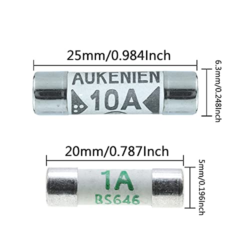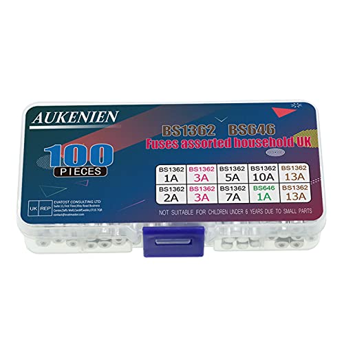 Specification: AUKENIEN Fuses Assorted Household UK 8 Values 100 Pcs BS1362 1A 2A 3A 5A 7A 10A 13A 240V 6.3×25 MM BS646 1A 5x20MM 1 2 3…