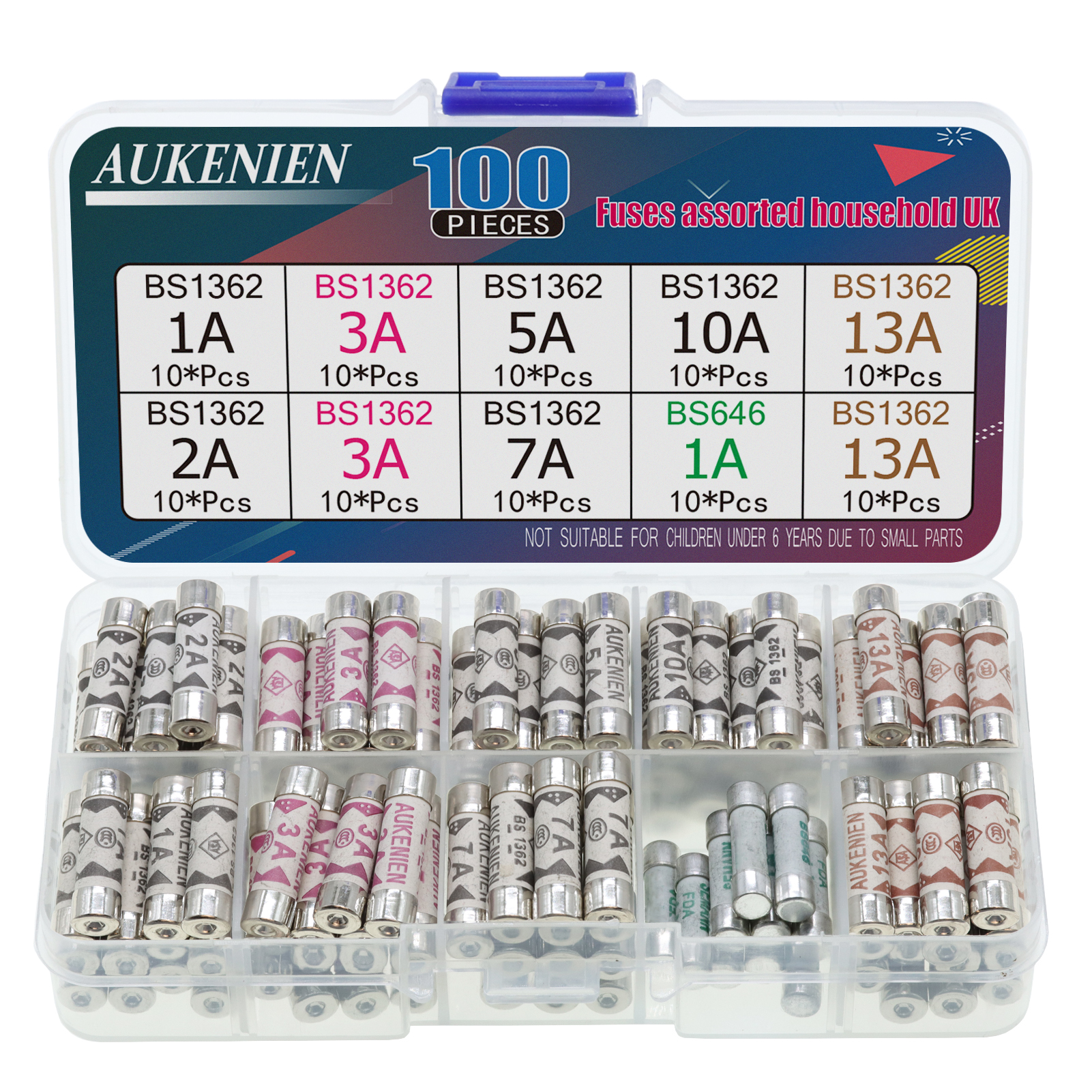 BS Fuse: HIGH-QUALITY bs1362 and bs646 ceramic tube fuses assorted household UK are manufactured by AUKENIEN brand.