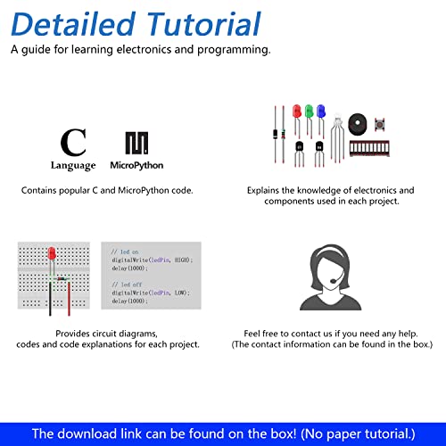 516-page detailed tutorial (including basic electronics knowledge) -> The download link can be found on the product box. (No paper tutorial.)
