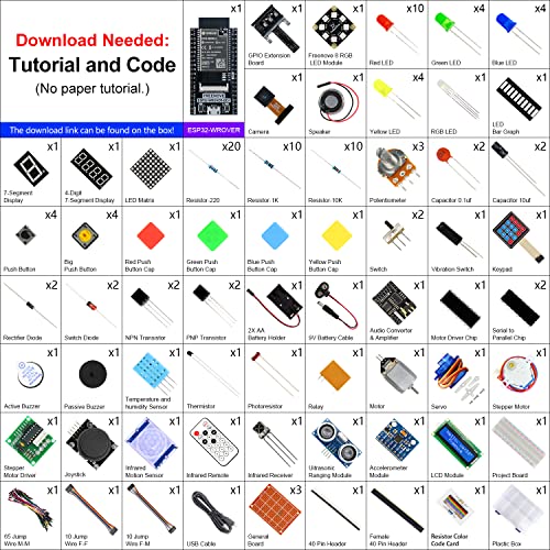 Specification: Freenove Ultimate Starter Kit for ESP32-WROVER (Included) (Compatible with Arduino IDE), Onboard Camera Wireless, Python…