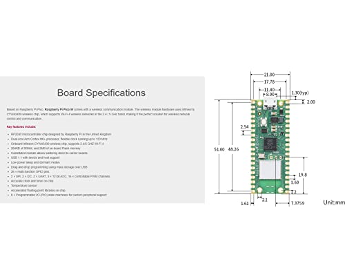 Specification: Waveshare Pre-Soldered Raspberry Pi Pico W RP2040 Microcontroller Board Mini Board Kit Based on Raspberry Pi RP2040 Dual…