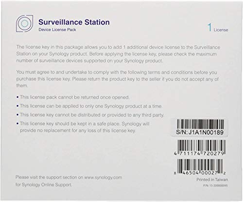 The Synology Surveillance Device License Pack is designed for expanding cameras and I/O modules. You will be able to set up and manage more devices on the network.