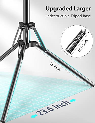 Upgrade Larger & Stabler Tripod: The Pnitri tripod is made of superior-quality aluminum alloy material. The legs of the tripod are 15″ long and the base of the tripod is larger than most tripods, providing stronger stability and greater grip. It is held in place by tightening wing nuts, height range (18″- 59″), With the ring light the total height is 71″ can better meet the needs of people of different heights use.