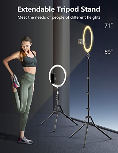 12.6″ Selfie Ring Light with Tripod Stand & Phone Holder, Pnitri Large Ring Light Widen Stand for Live Streaming, Makeup, YouTube, TikTok Video, Photography (Total Height 71″)