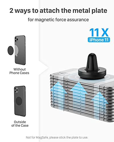 [Tips for iPhone 14/13/12 Series] Please stick the metal plate to your phone or outside your phone cases before using this car mount. Not for MagSafe.