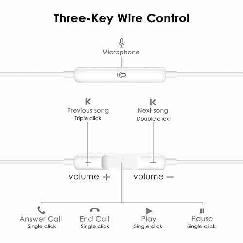 【Remote Control & Mic】The headphones for iPhone built-in controller with a high-quality hands-free microphone. Music and Volume controller is designed to play/pause music, volume up/down, next & previous track, answer/end calls Wake up Siri. No need to take out the phone from your bags or pocket when performing these operations,emancipating your hands.