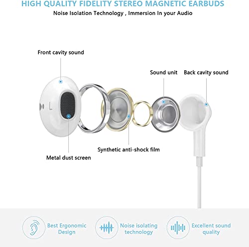 Specification: Wired Earphones for iPhone, HiFi Stereo Sound Headphones, In-Ear Stereo Noise Isolating Earbuds, Mic+Volume Control…