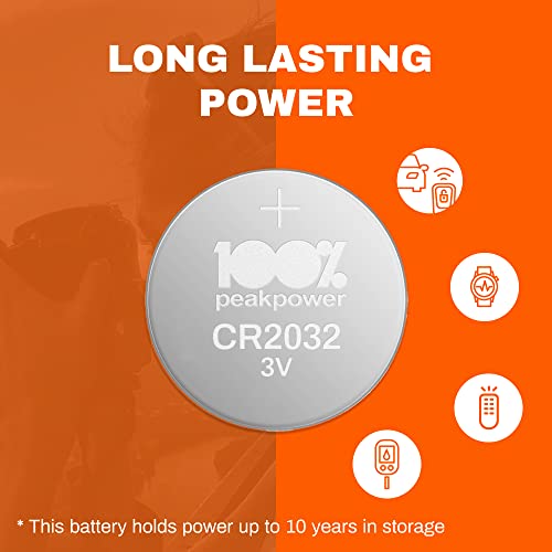 CR2032 Battery 3v lithium pack of 10 (CR 2032) by 100% PeakPower