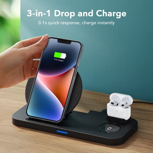 ✔[Qi Wireless Charger] – It’s a good charging solution for phones, Airpods Pro, and iwatch, 3 in 1 wireless charging station only use one cable,Offer a much cleaner layout for your nightstand and desk which makes life much easier.Please use our supplied QC 3.0 adapter which can solve the problems of slow wireless charging.