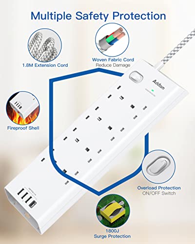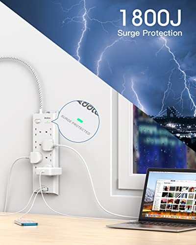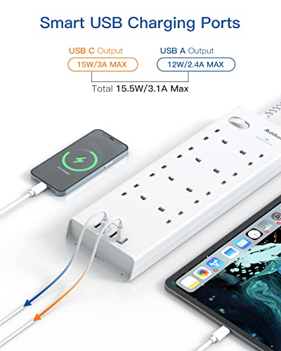 Specification: Extension Lead with USB Slots, 8 Way Outlets 4 USB(1 USB-C and 3 USB-A Port), Power Strip with 1800J Surge Protection…