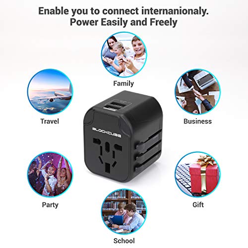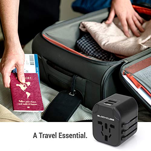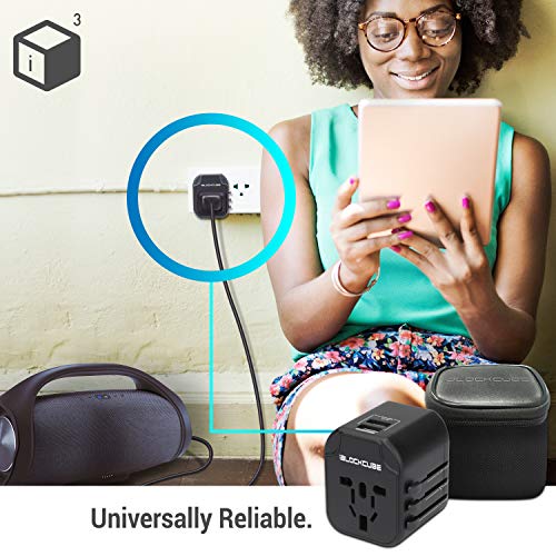 iBlockCube Worldwide Travel Plug Adapter with 2 USB (2.4A) Charging Ports, International Universal AC Socket, Dual…