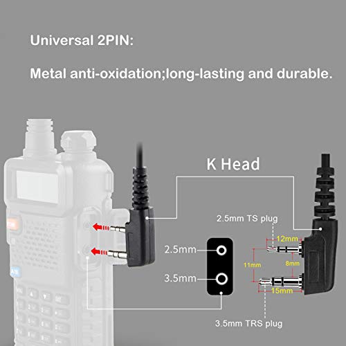 UNIVERSAL KENWOOD 2 PIN; metal coating anti-oxidation; long-lasting durability; compatible with most walkie-talkies such as BAOFENG Retevis eSynic Nestling