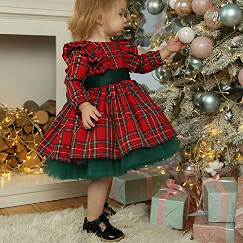 BemeyourBBs 1-6 Years Kids Baby Girl Christmas Dress Baby Girl Christmas Clothes Long Sleeve Plaid Bow Dress Kids Girls…