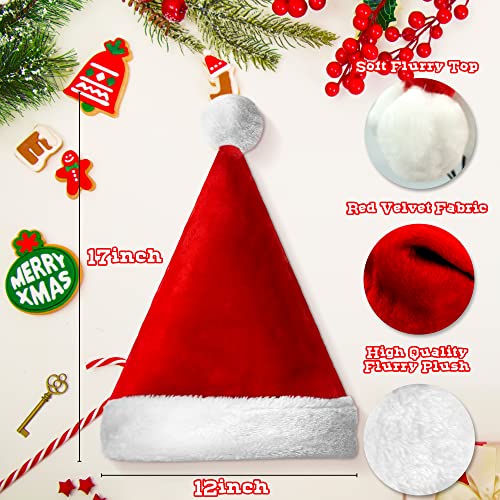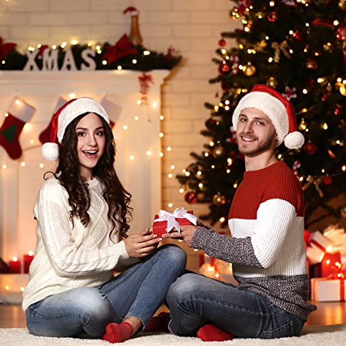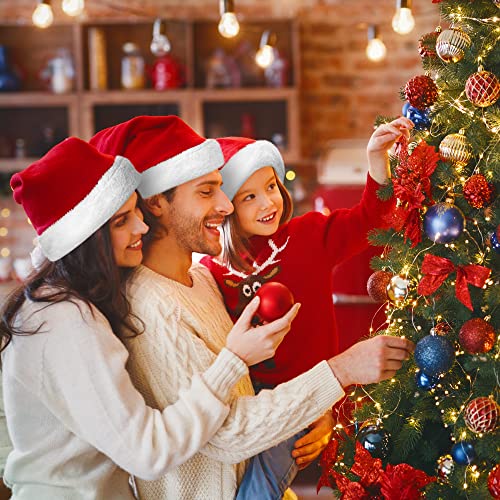 【Premium Quality】50g Per pack, Use luxurious red plush material and extra-thick white, thickened, soft, faux fur trim material protect your head and hair without stimulation or sweat. Everyone will loves these Santa hat so much