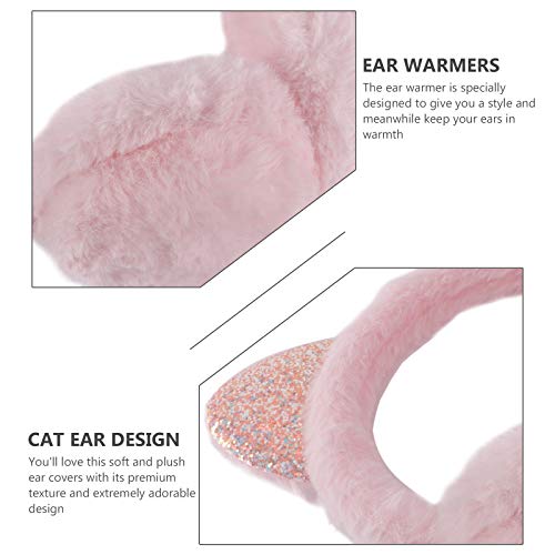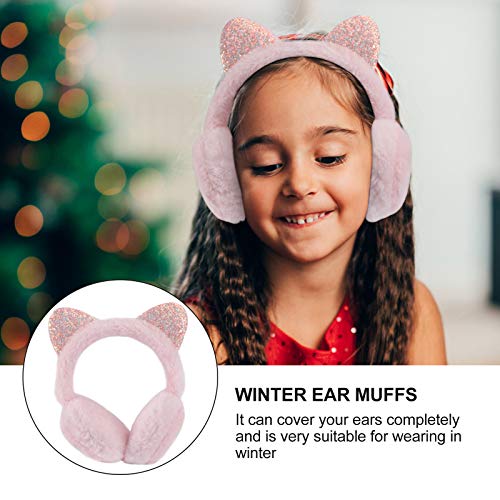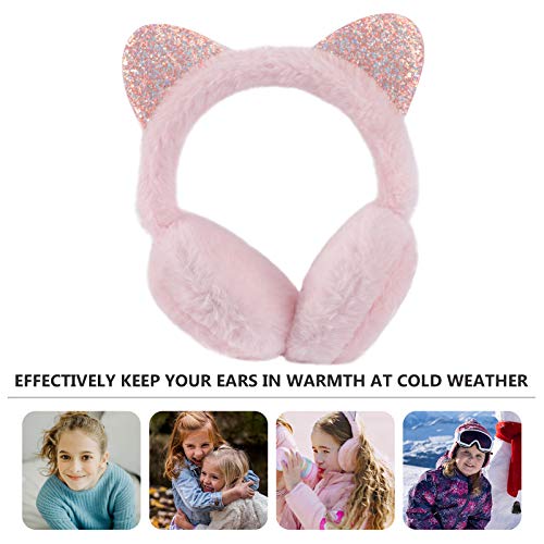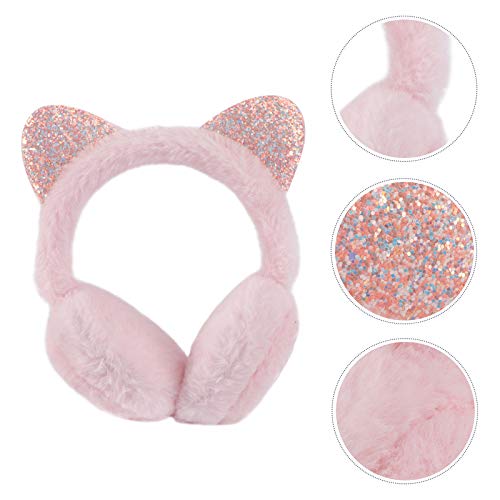 Amosfun Cat Ear Muffs Plush Earmuffs Sequin Winter Warm Earmuffs Animal Ear Covers Warmers Headwear for Kids Girls