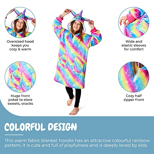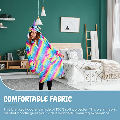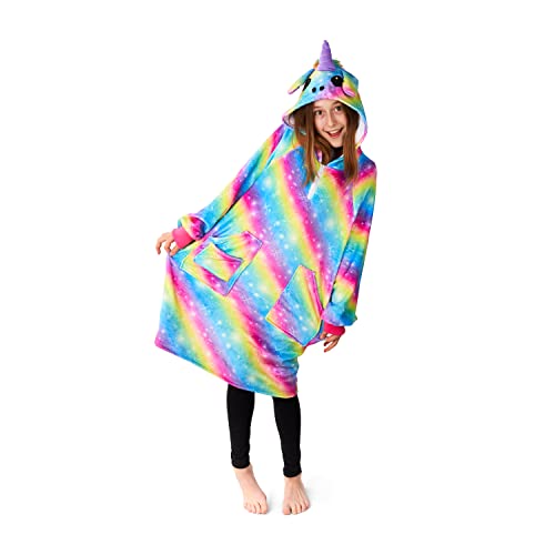 Tanness Kids Oversized Unicorn Blanket Hoodie with 2 Large Pocket | Comfy Hooded Blanket with Rainbow Design | Kids…