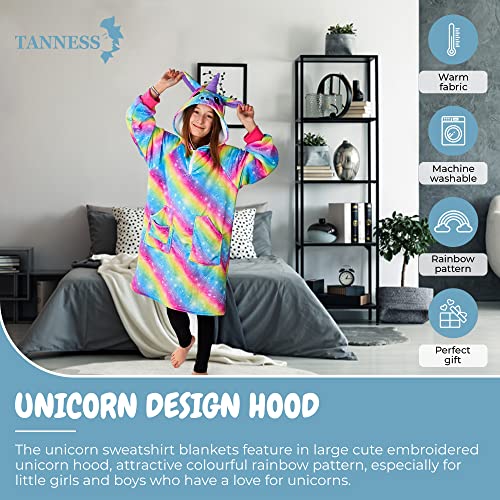 Specification: Tanness Kids Oversized Unicorn Blanket Hoodie with 2 Large Pocket | Comfy Hooded Blanket with Rainbow Design | Kids…