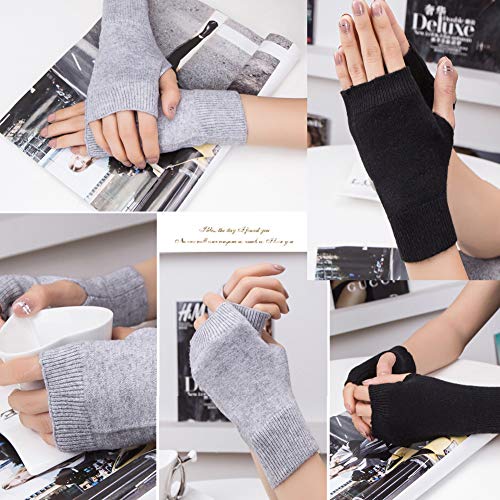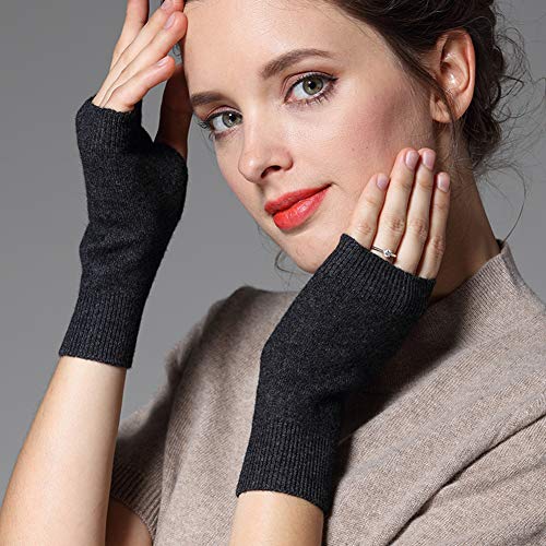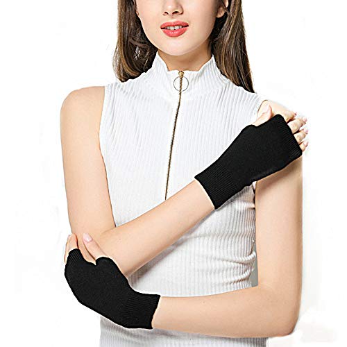 Cashmere Fingerless Gloves, Wrist Warmers Thumb Hole Warm Half Fingerless Gloves Winter Warm Fingerless Mittens Black…