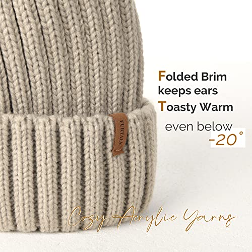 FURTALK Winter Hats for Women Double Layer Fleece Line Beanie Hat with Bobble Pom Pom Hats