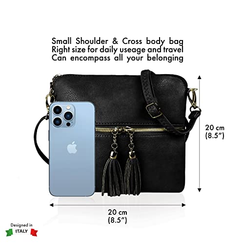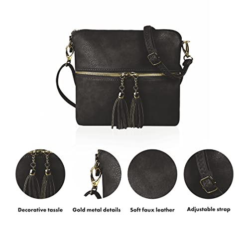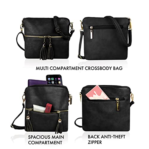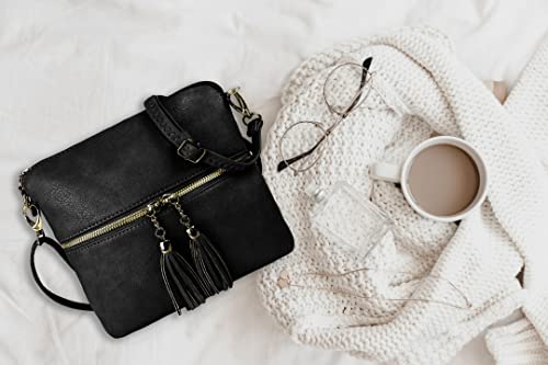 [Compartments]- Our small bags for women has one main section with a coin, keys zippers inside and two card sections, front zipper with tassels is big enough for your wallet and phone, and the back anti theft zipper is brilliant for your valuable belongings.