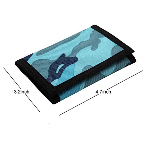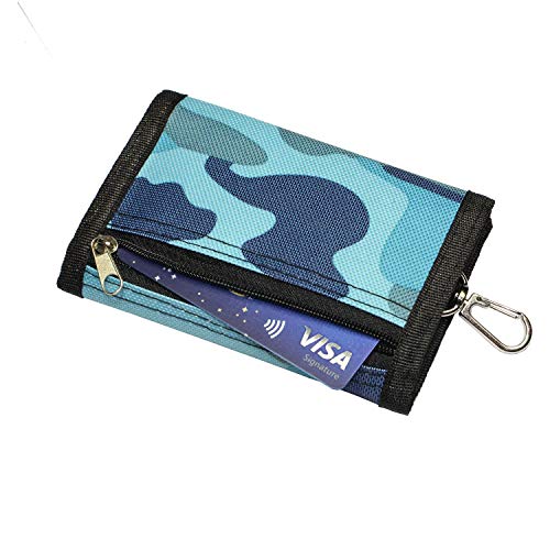 RFID Slim Camouflage Wallet for Kids/Trifold Wallets for Men/Mini Trifold Coin Purse with Zipper for Kids – Blue