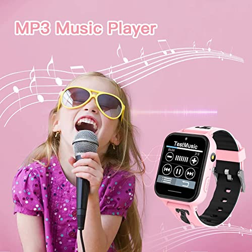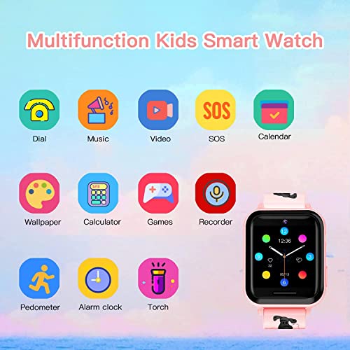 🎁【Multifunctional Kids Smart Watch】: Kids SmartWatch for 3-12 years old boys and girls, 11 Games, 10 contacts, SOS, Support 5 languages, call calculator, camera, music player, 12/24 hr format. Note: this kids music smartwatch phone does not support app.