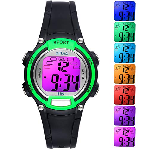 🍀Muti-Function Kids Sport Watch: 7 Color Digital Display,Display Hour,Minute,Second,Week,Chime hourly and Alarm,12/24H format ,Stopwatch.If you have any problems after received it,please feel free to contact us by email:Hongdastoreservice@126.com, we will try our best to solve it.