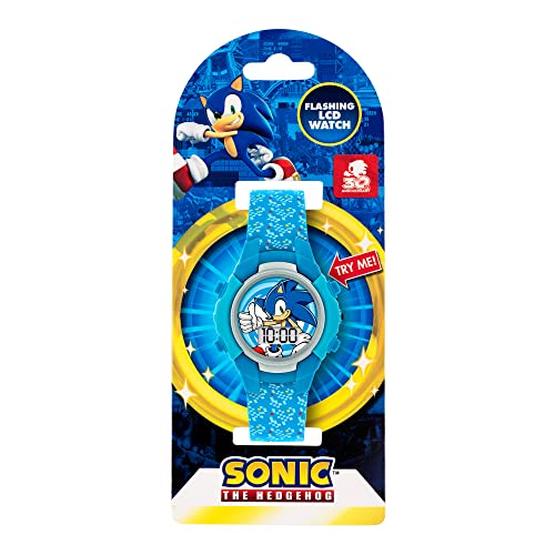 Sega Sonic the Hedgehog Flashing Watch. Featuring a light up case at the press of a button, a printed Character dial, digital time display. Packaged on a branded backing card and comes with one year guarantee.