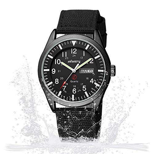 Specification: Infantry Mens Military Watch Analogue Causal Black Waterproof Wrist Watches for Men Army Tactical Field Work 12/24 Hour…
