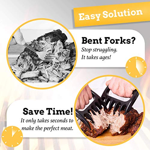 No more bent forks: use the right meat claw kit for the right job – stop struggling with a random fork from your drawer or skewers from the garage! Get the right meat claws bbq tools meat shredding for the job and look like a pro at your next tailgating event or barbecue party, shredding meat has never been so easy, even your granddad could do it