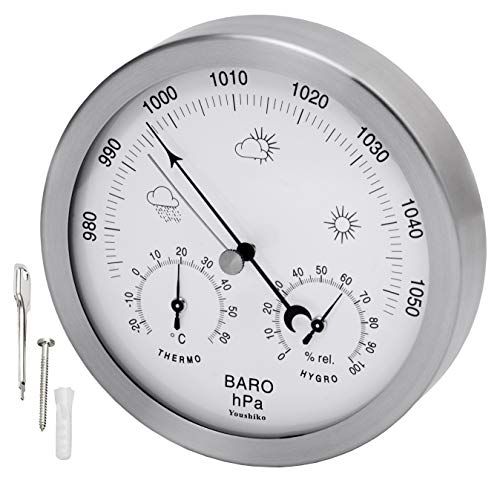 Youshiko 3 in 1 ( Latest 2023 Version ) Weather Station for Indoor and Outdoor use , diameter 14 cm , Barometer…
