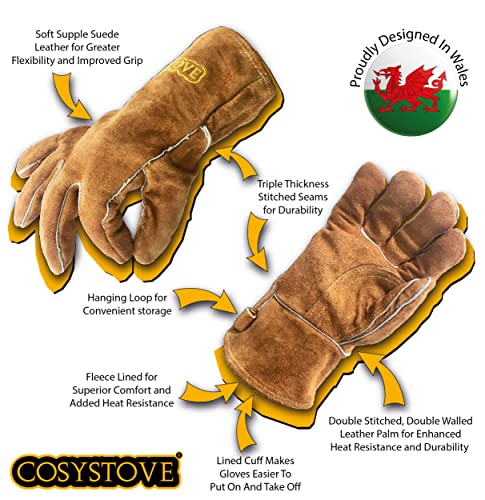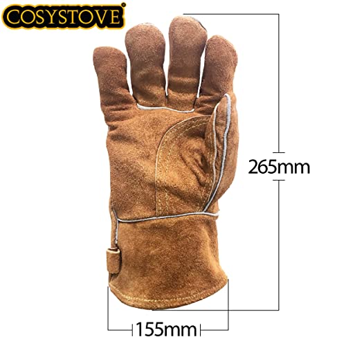Cosystove Genuine Full Leather Heavy Duty Heat Resistant Gloves for Woodburner, Multi-Fuel Stoves Heavy Duty Safety…