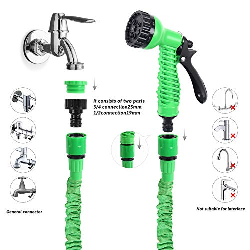 EXPANDABLE FLEXIBLE DESIGN: GRANDMA SHARK garden hose expands from 3 times its size in seconds.The hose will return to its original length in seconds when the water is out. It won’t twist, tangle, or kink, burst or tangle during use. NOTE: Please make sure the water pressure is high enough (>=6 bars) ,or you may find this hose does not expands to 3 times in length.