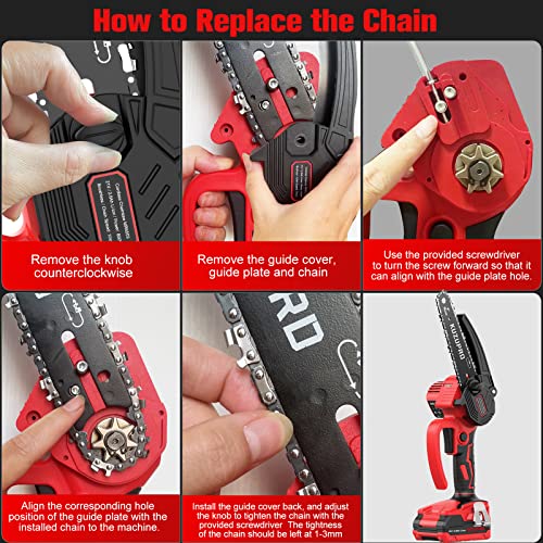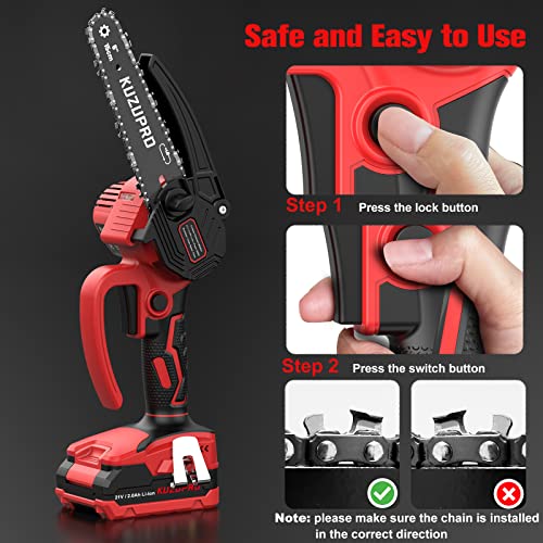 Specification: KUZUPRO Mini Chainsaw 6 Inch, Cordless Chainsaw Brushless with 2 Batteries 2.0Ah, 2 Chains, 10m/s Chain Speed Electric…