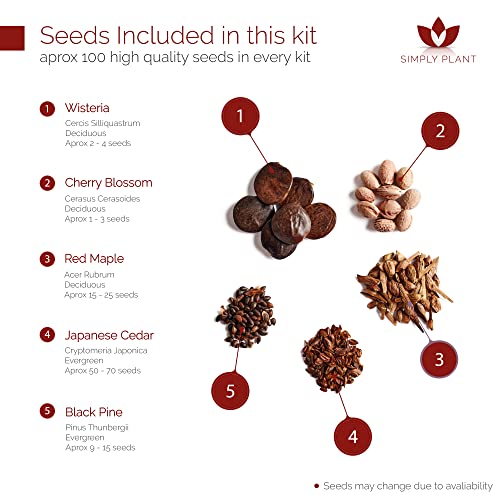 LOTS OF SEEDS – The use of high-quality seeds is one of the most important elements in increasing the possibility of success when growing. Each and every seed that we supply is sourced from our trusted supply chain. Great care is taken when the seeds are gathered, stored, and packed. You will find in this kit on average over 80 seeds which is more than enough high-quality seeds to grow many plants, species include Black Pine, Japanese Cedar, Wisteria, Red Maple, and Cherry Blossom.