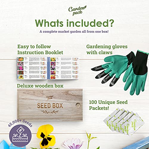 Grow Your Own Seed Box by Garden Pack – 100 Varieties of Flower, Herb, Vegetable Seeds – Gardening Gifts for Women