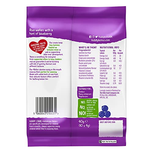 Specification: Kiddylicious Blueberry Wafers – Gluten and Dairy Free Kids Snack – Suitable for 6+ Months – 4 x 10 Twin Packs