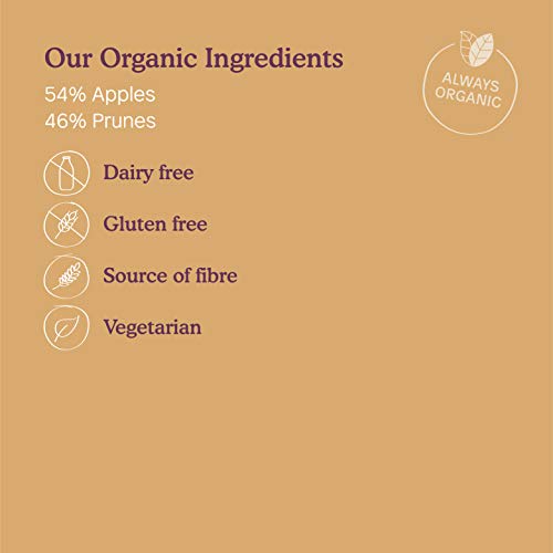 Introducing the delicious double act of prunes and apples. We blind taste-tested prunes from five farms in three countries before selecting our richer, darker and more decadent prunes from the Serbian Kapaonik mountains to bring a rich caramel flavour to this fruit snack. Blended with crisp, fresh-tasting apples to balance the flavour and complement the caramel flavour of the prunes. The recipe is the perfect introduction to fruit flavours and a great souce of fibre to help get things moving. Pack contains 6x100g pouches. Directions: Delicious warm or cold. To warm, stand in hot water and check temperature before serving. Safety warning: Do not microwave the pouch. To reduce the risk of choking keep cap away from infants and supervise when eating. If this pouch is damaged or oddly inflated, do not eat – return to us. return to us.